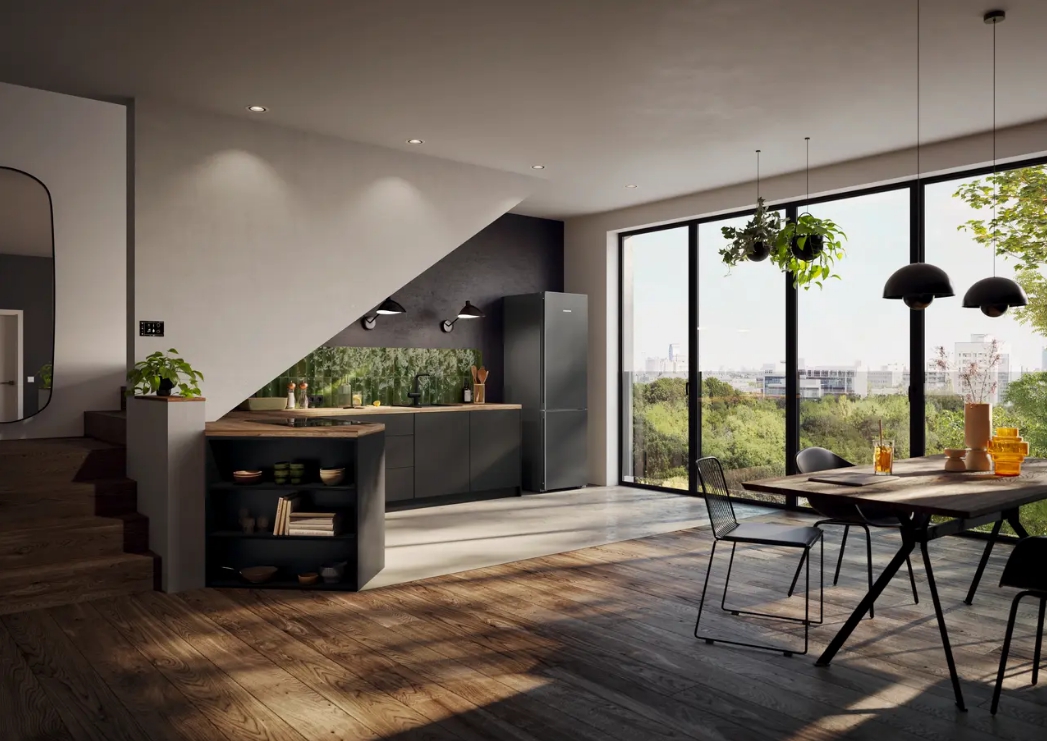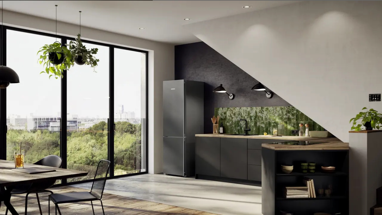 Этот комбинированный холодильник-морозильник предлагает продуманные технологии для повседневного использования. Система EasyFresh создает оптимальные условия для хранения фруктов и овощей, а NoFrost избавляет от необходимости размораживания. При общем объеме 383 л и глубине всего 67,5 см модель идеально встраивается в современные кухни, сохраняя просторное внутреннее пространство.