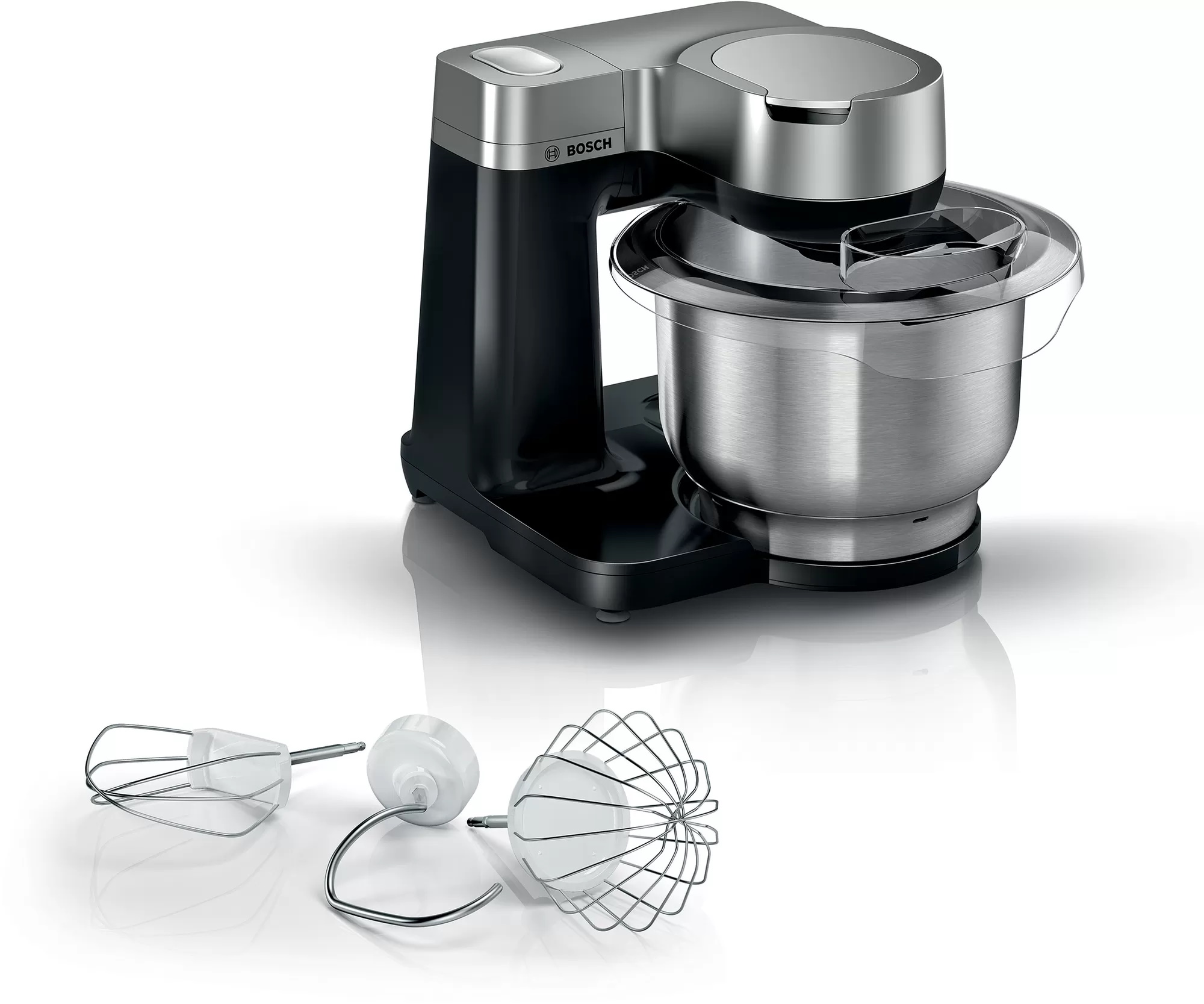 Двигатель Bosch мощностью 900 Вт: идеально подходит для замеса даже тяжелого теста для пиццы и пельменей и быстрого взбивания.