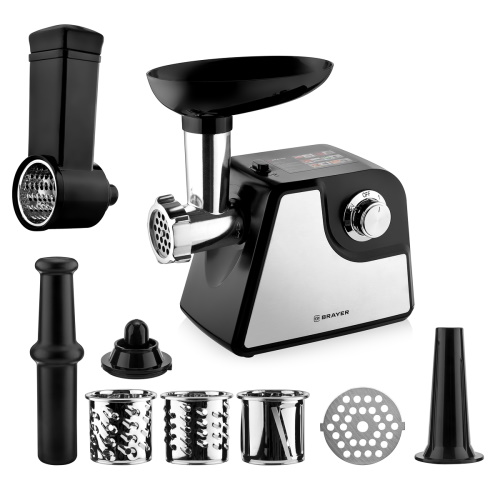 В комплект входят насадки для приготовления различных блюд. Вы сможете приготовить фарш для котлет, тефтель, голубцов, измельчить мясо для начинки в чебуреки, беляши, пельмени, натереть или нашинковать овощи. А насадка «Кэббе» позволит приготовить ароматные колбаски.
