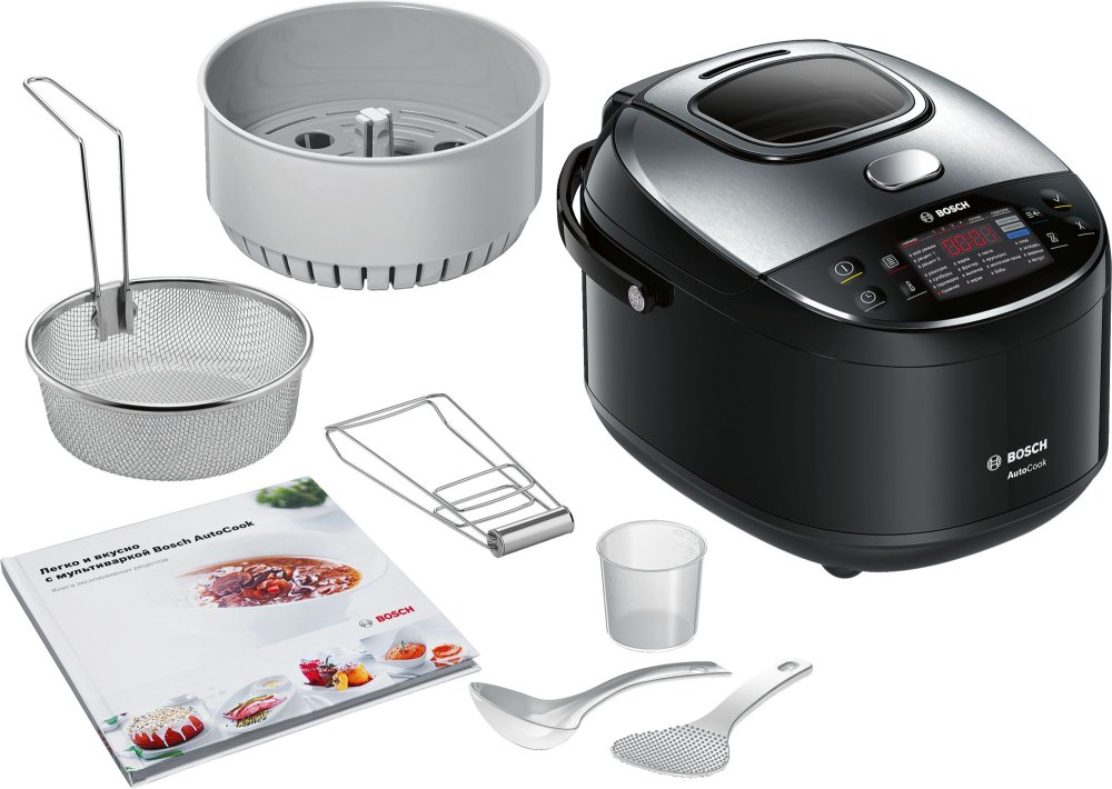 Автоматические программы (короткая/средняя/длинная): разогрев, суп/борщ, пароварка, тушение, жарка, фритюр, выпечка, варка, паста, крупы/рис, молочная каша, бобы, плов, холодец, варенье, йогурт.