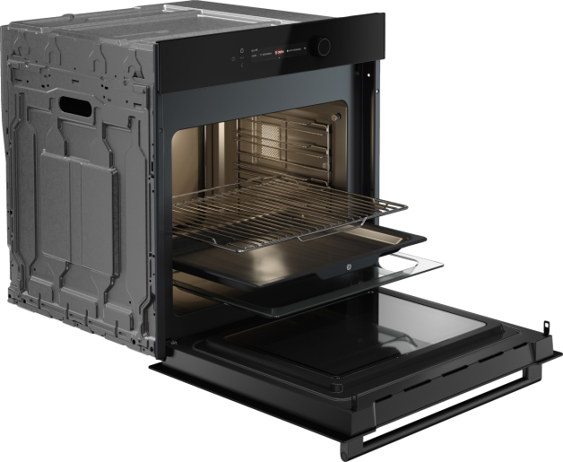 Духовой шкаф с элегантным дизайном и передовыми технологиями. Черное стекло и скандинавская эстетика гармонично сочетаются с многофункциональностью и интуитивным управлением для профессионального результата.